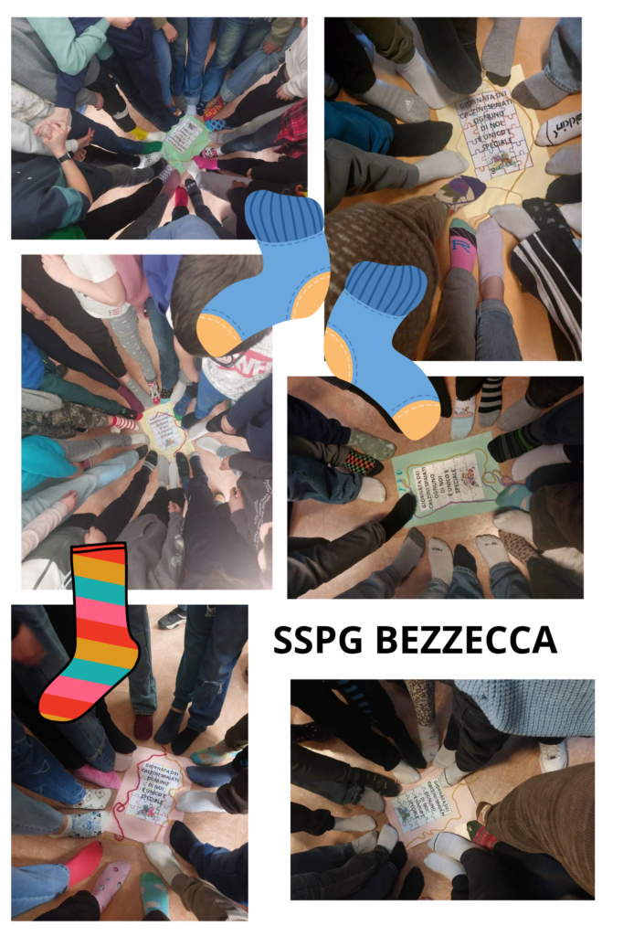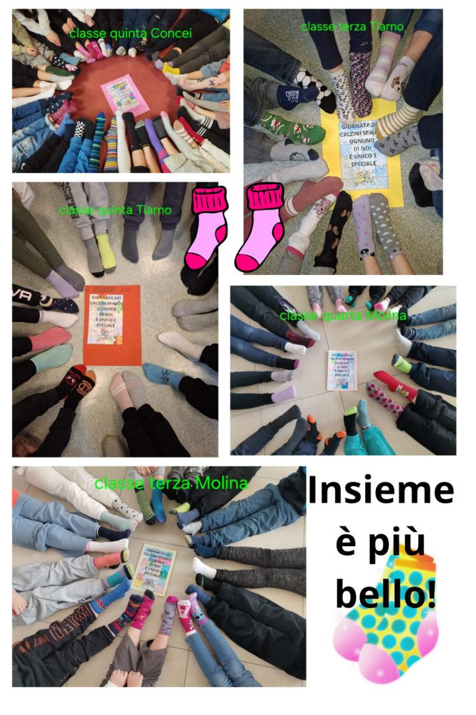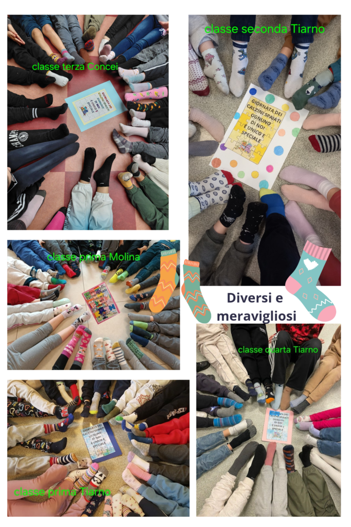 Il 6 febbraio, in molte scuole italiane, si è celebrata una giornata speciale, “la giornata dei calzini spaiati”, che valorizza la diversità e unicità di ogni persona, come ricchezza. Indossare calzini diversi, colorati e divertenti, è diventato il simbolo della valorizzazione dell’altro. È una ricerca condivisa di riconoscere nell’altro caratteristiche uniche e speciali. Nel nostro Istituto questa giornata ha assunto un sapore diverso, particolare, quello della condivisione. In tutte le classi dei quattro plessi si è trattato l’argomento, i bambini e ragazzi si sono confrontati, hanno scoperto di essere importanti per gli altri, si sono sentiti tutti speciali. Questo perché il lavoro è stato uguale per tutti, particolare per ciascuno. Gli insegnanti hanno saputo caratterizzare il percorso e renderlo unico, mettendosi in gioco e tirando fuori il meglio da ogni alunno. Le foto rappresentano con semplicità tutto questo.