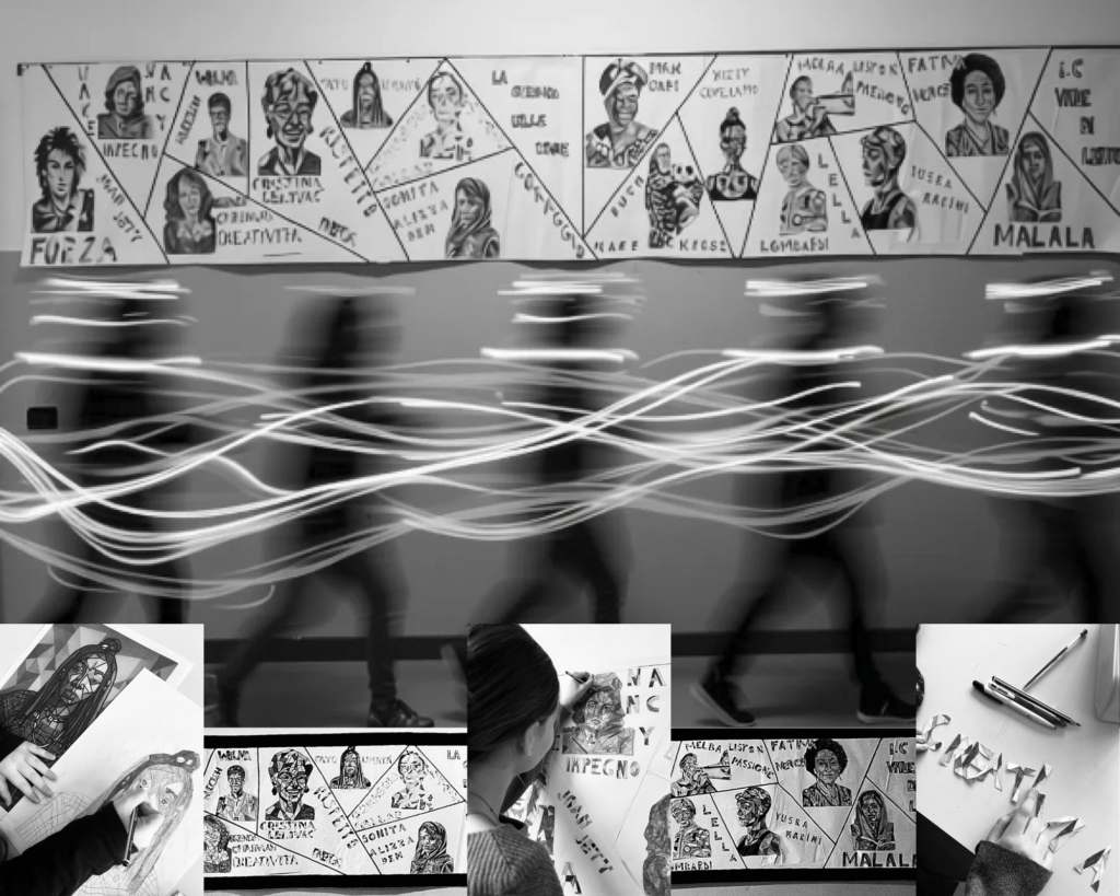 La scelta delle figure di riferimento — attinte dalla letteratura contemporanea (Storie della buonanotte per bambine ribelli , autori Cavallo e Favilli), dalla ricerca digitale o, più intimamente, dalle radici familiari — crea un ponte tra il globale e il privato.